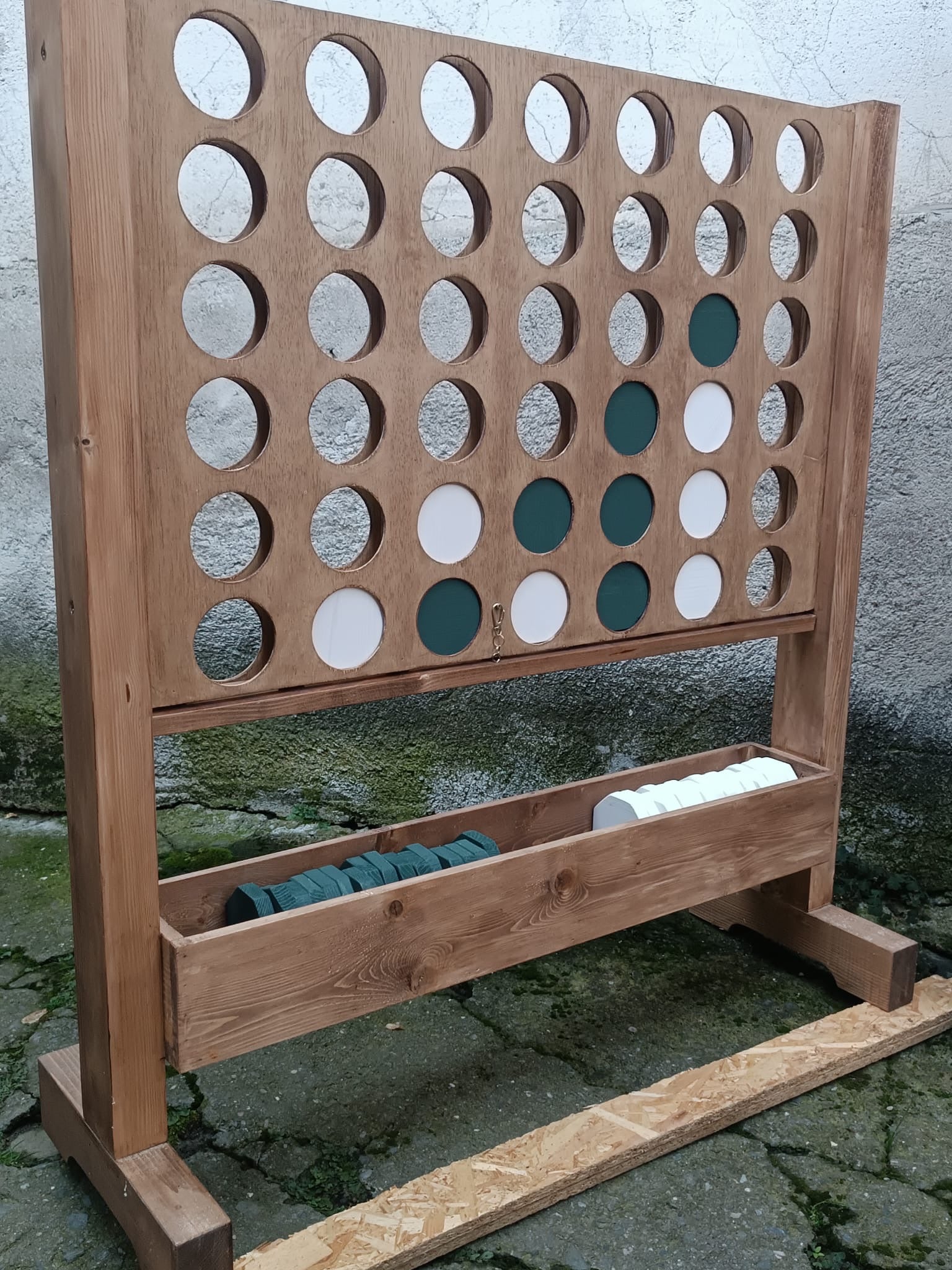 Descoperă bucuria competiției cu jocul uriaș Four in a Row (Connect 4) din lemn natural!