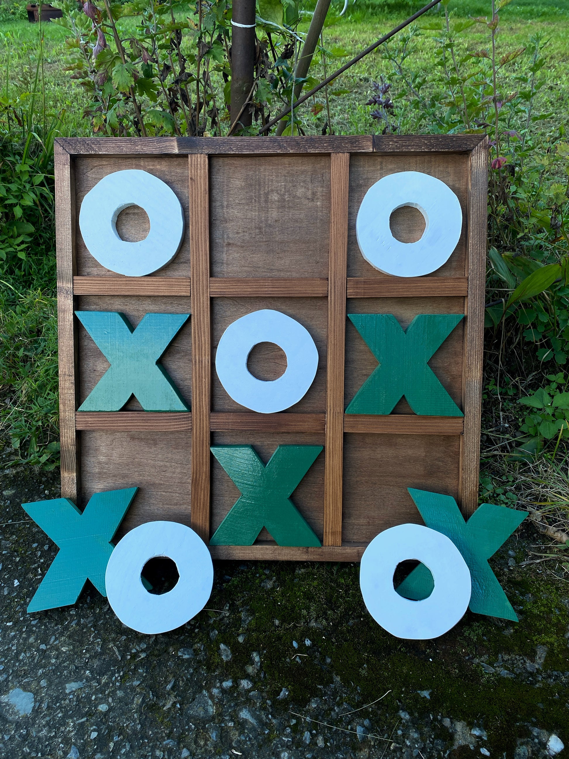 Adu zâmbete și voie bună cu jocul uriaș X și 0 din lemn, perfect pentru joacă și relaxare!